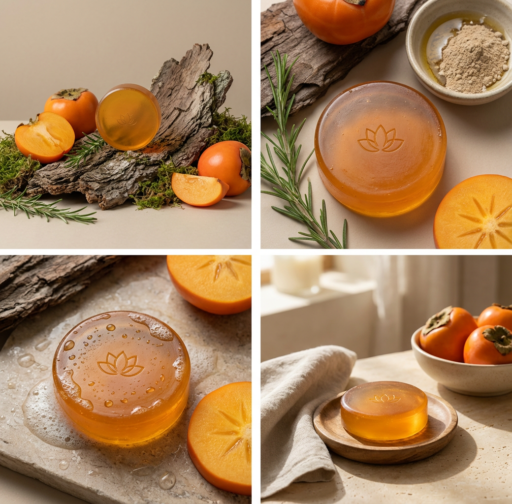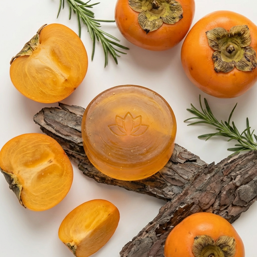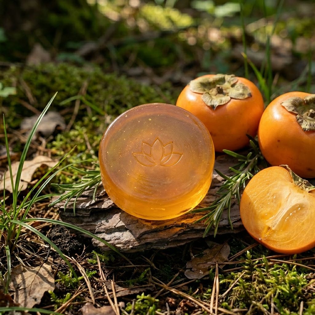 Crafted with organic persimmon extract, shea butter, and essential oils, our soap combines nature's finest ingredients. The persimmon fruit is rich in antioxidants and vitamin C, making it a powerhouse for skin renewal. Each bar is cold-pressed to preserve the beneficial properties of our carefully selected botanicals.